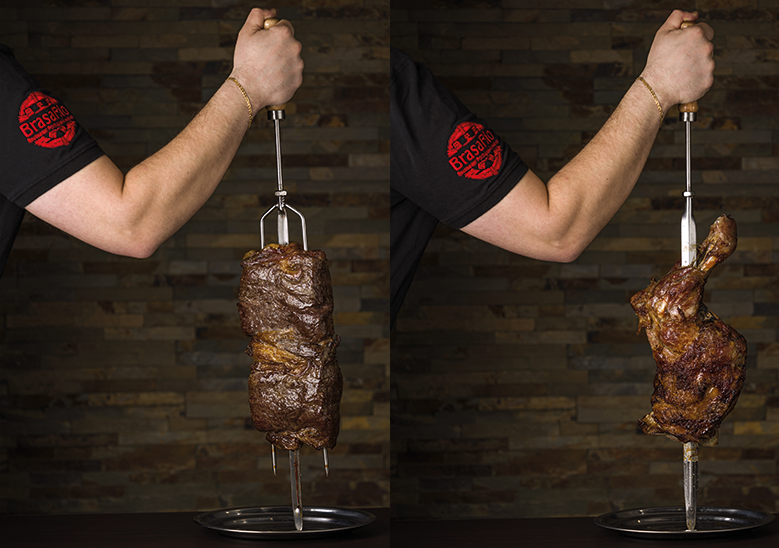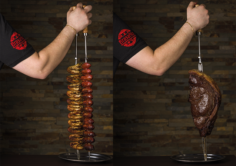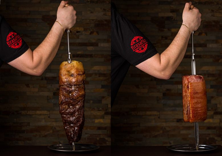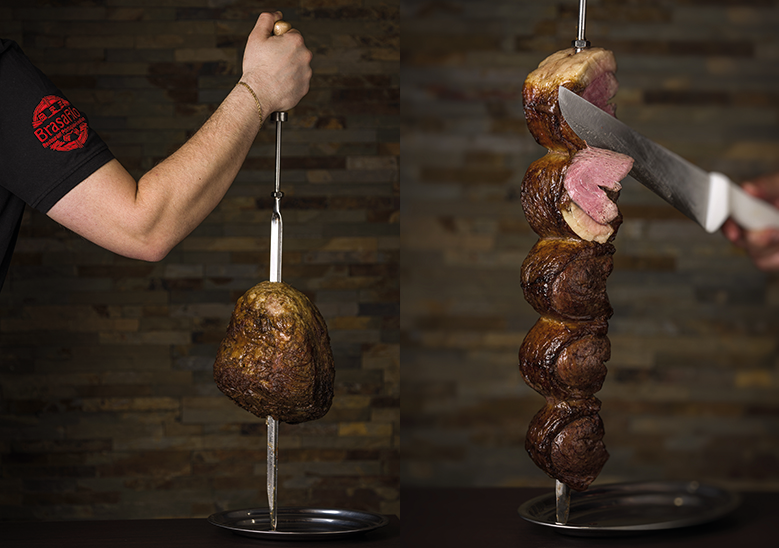 Le concept du Rodizio vous offre la possibilité de déguster de nombreuses viandes savoureuses rôties à la broche. Comme le veut la tradition, les Churrasqueiros (serveurs de viandes grillées), équipés de grands couteaux très aiguisés, découpent les viandes directement dans votre assiette tout au long de votre repas.